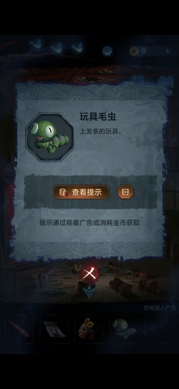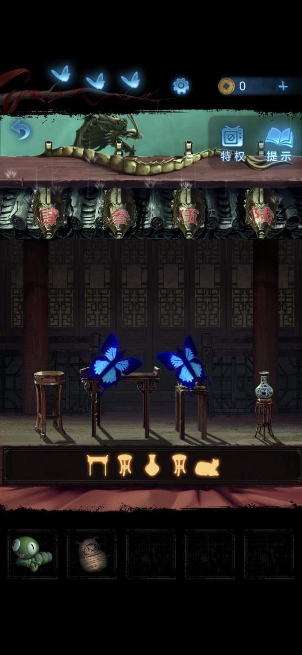 把发条毛毛虫,蝴蝶玉,小包放在柱子上,玩故事,玩游戏,建议跳过广告,继续故事,全剧结束。