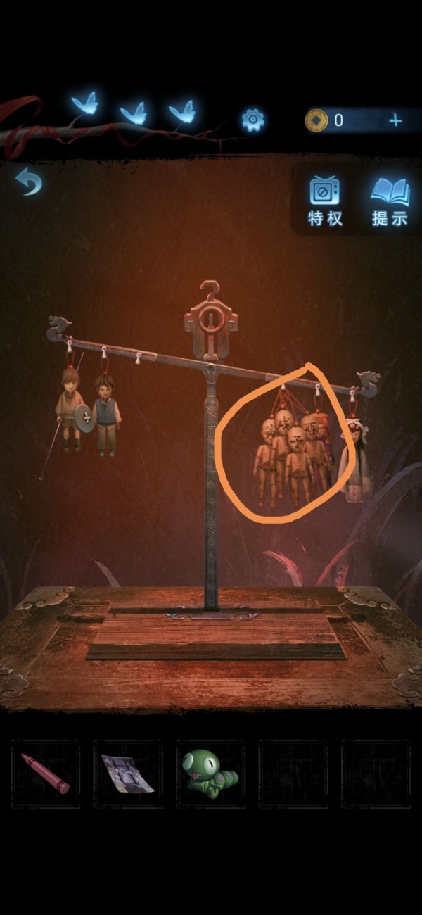 将木偶挂在天平的左侧,获得一张照片贴纸。
