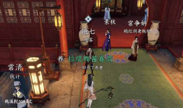 然后我去了洪雁馆和阮琦交谈。进入真正的洪雁馆后,我与二楼的吴彼交谈。洪雁馆的坐标是(1093,940)。如果你在二楼找不到这个NPC,你可以试着改变画质。