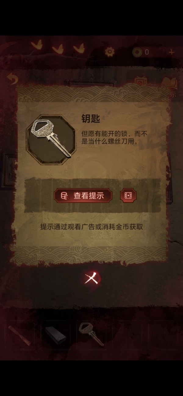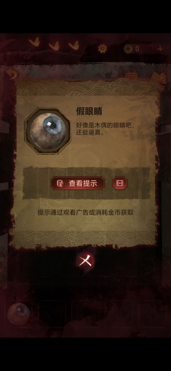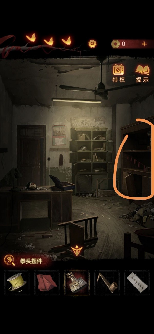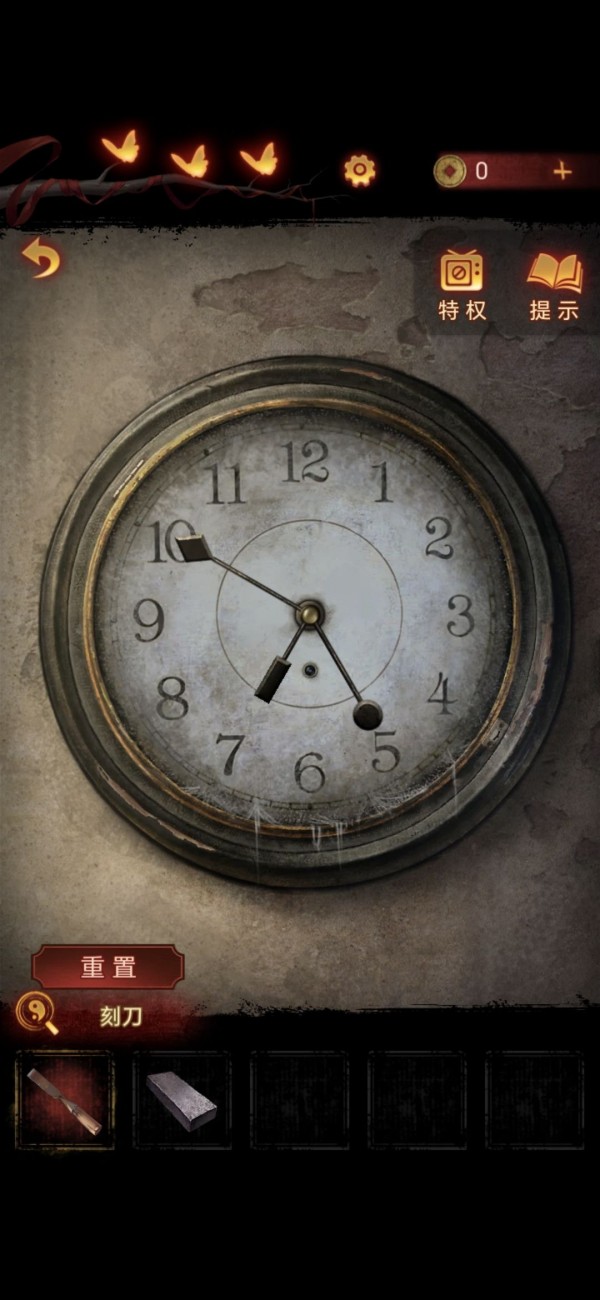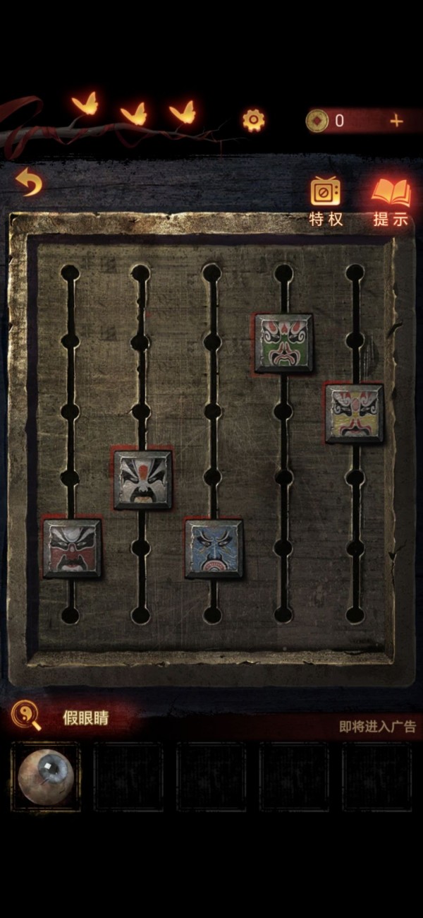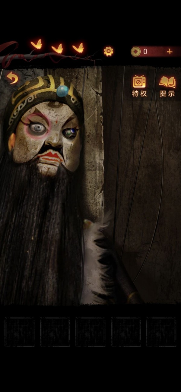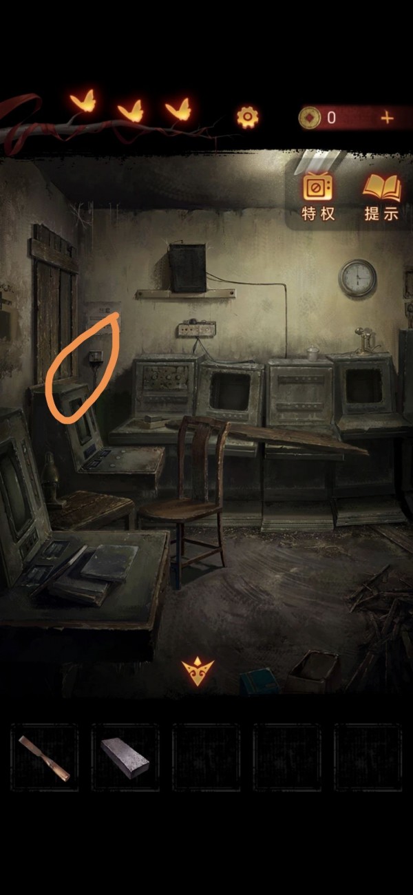 点击椅子,用切肉刀在脸上刻眼睛,娃娃呕吐,拿到钥匙。