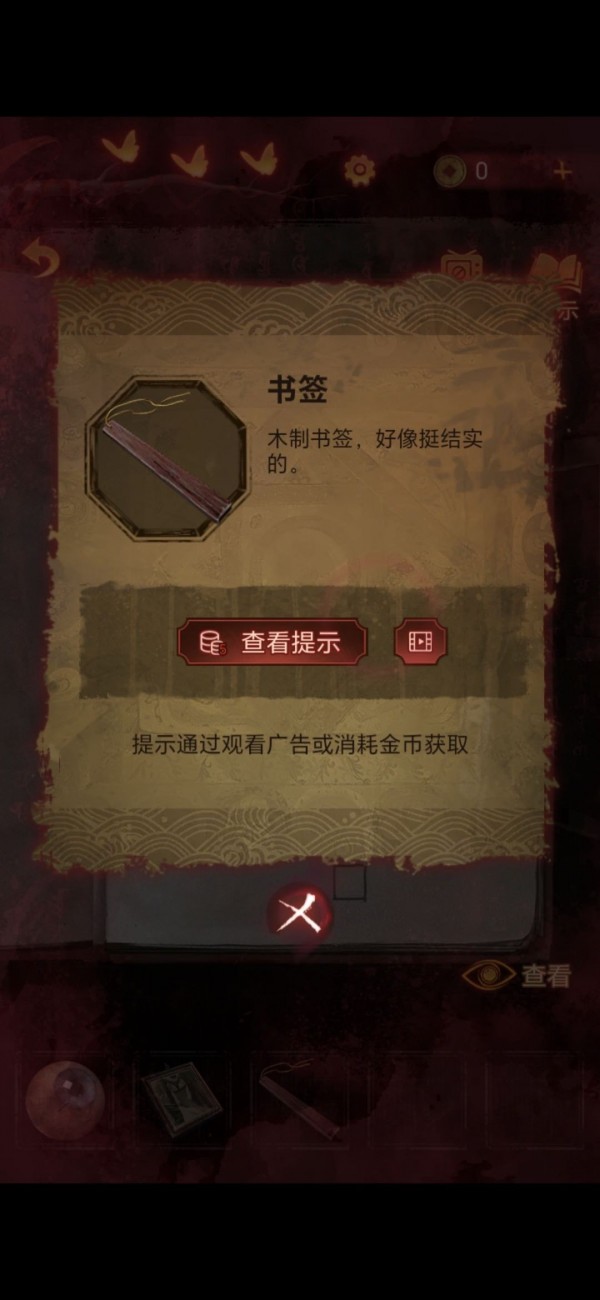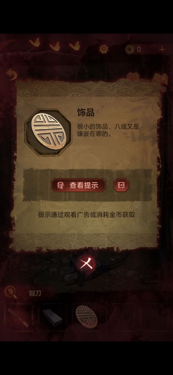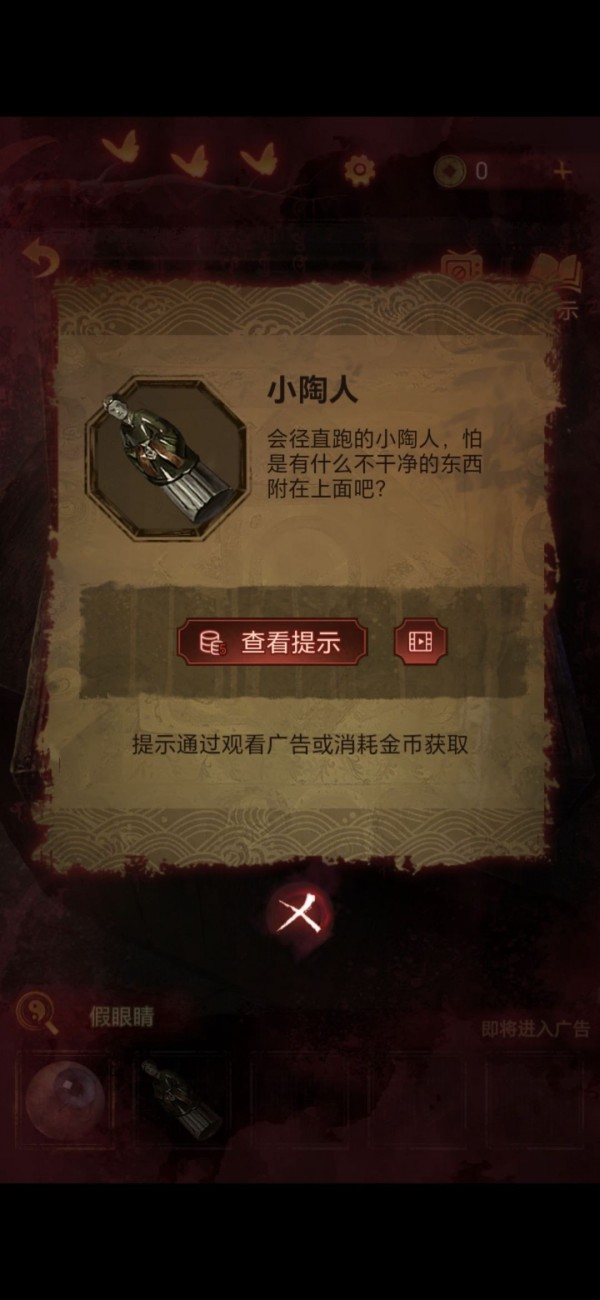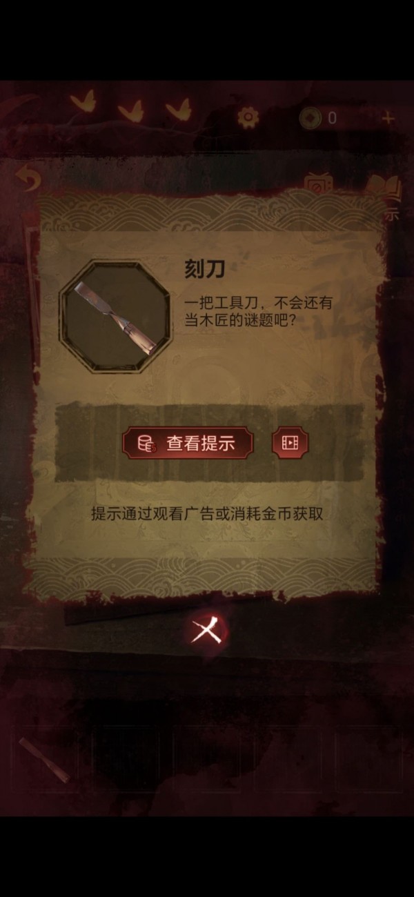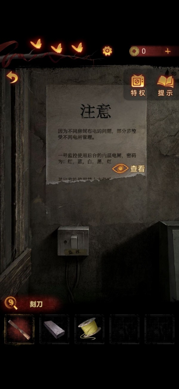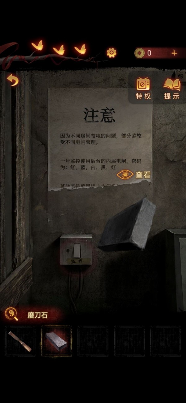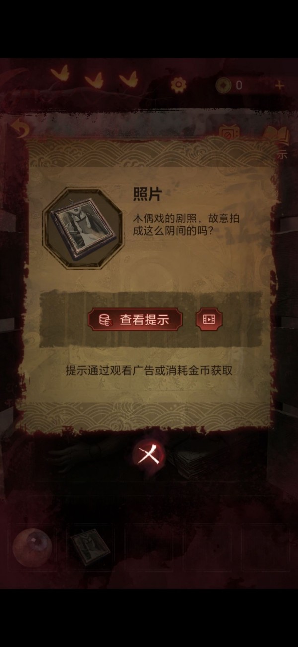 点击椅子,用切肉刀在脸上刻眼睛,娃娃呕吐,拿到钥匙。