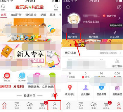 1)打开麦乐购,首先点击首页的【我的】,然后在界面中进入【我的麦圈】; (如下所示)