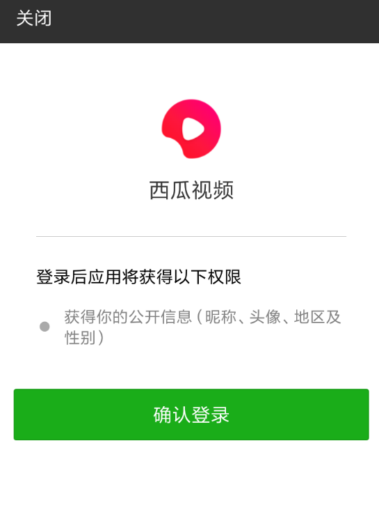 3、这样,用户确认已授予微信登录西瓜视频的权限后,就可以使用微信快速登录软件了。到