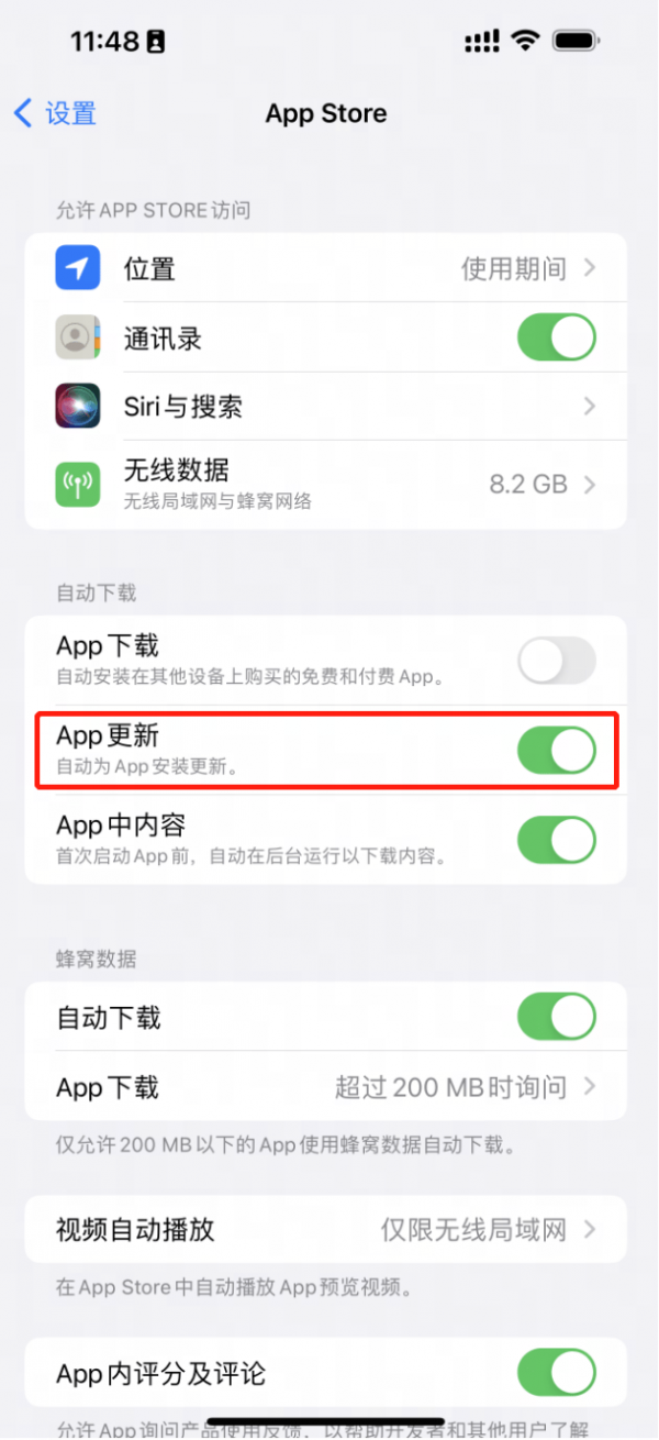 IOS用户还可以开启App Store的自动更新(设置-App Stpre-开启App更新),下一个版本更新时可以在后台静默更新。