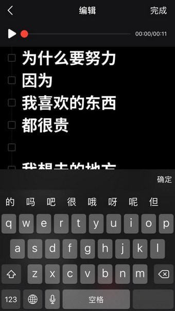 3、如果识别的文字偶尔不准确,可以在“编辑”界面进行优化和详细排版。编辑和设置文本动画的规则是:每个动画一行,空行代表文本动画的翻转效果。