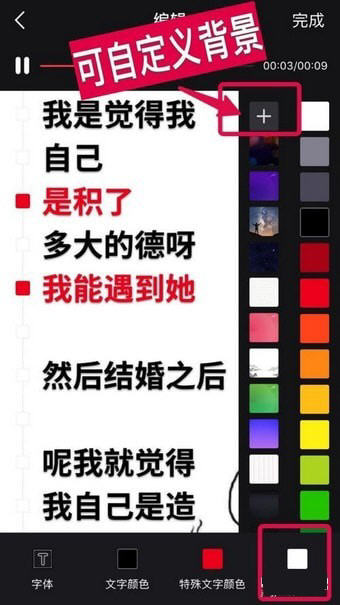5、在编辑页面,点击下方的“字体”、“文字颜色”、“特殊文字颜色”、“背景”按钮,对相关内容进行自定义修改,随意编辑。