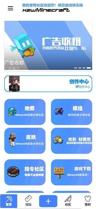 1.下载完软件,安装在手机上打开,可以看到很多我的世界相关的工具、论坛、社区等板块;