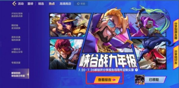 英雄联盟手游峡谷战力年报查看方式列表;