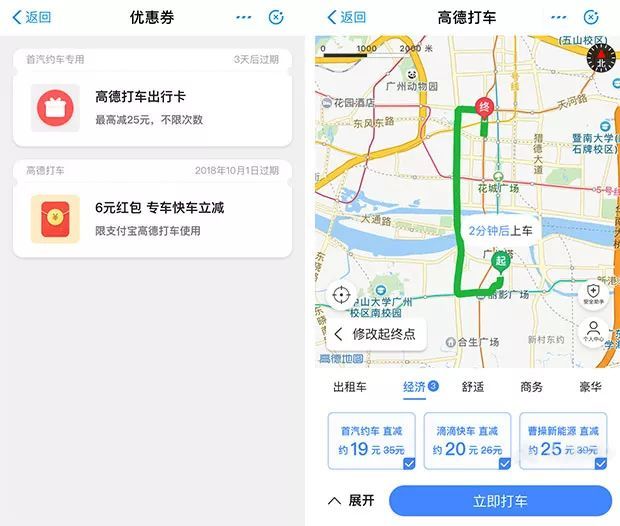 自网约车补贴战结束以来,出租车价格逐渐上涨。虽然偶尔会送一些优惠券,但极低的折扣和无意义的扣减就像没有用处一样。不过,支付宝此时推出了高德打车App,也给了新用户更高的折扣。