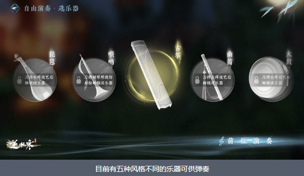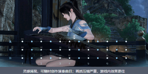 比如在【演奏】状态,作为乐坛新人,大家可以根据乐谱选择曲目,练习演奏古筝;如果有灵感,也可以随便玩玩,创作和演奏自己的曲目。