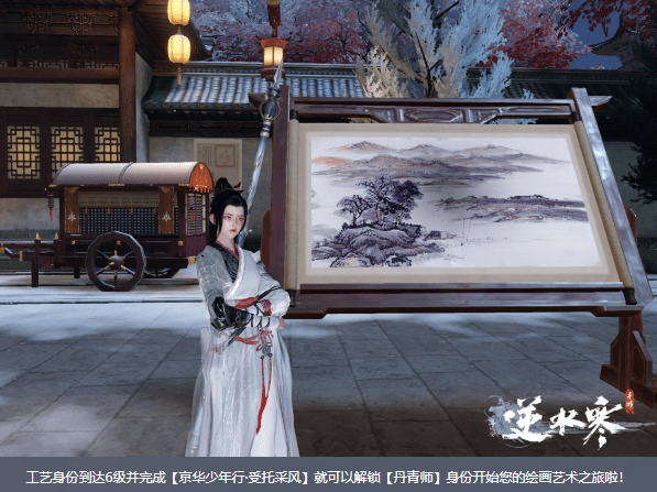 在亲眼目睹张择端画完之后,你隐藏的绘画天赋被激活了,你变成了【丹青大师】,试着自己动手画,墨就会生出春天。你的画可以在场景中展示给其他玩家欣赏。