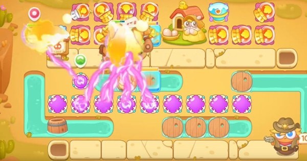 桶里的兔子血量很厚,玩家需要锁定攻击,然后继续增加魔法球的数量。