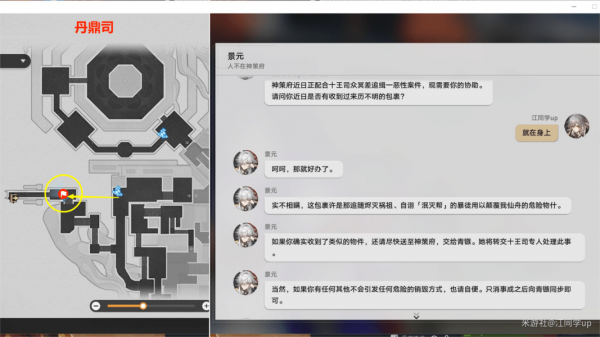(5)所以,你在这个位置触发了静园的短信后,就不需要去发光点【调查】了。我们可以直接去长乐天的厕神府找清漪聊聊天。