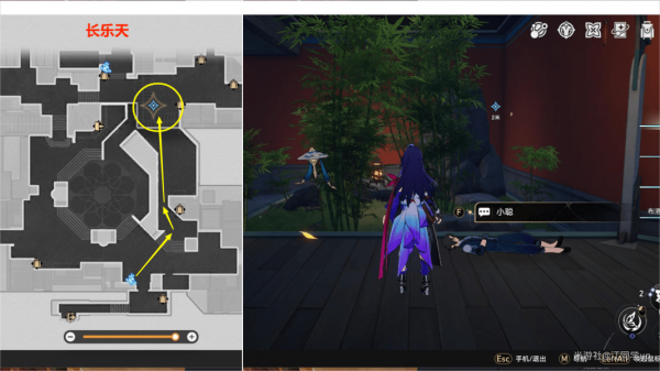 (14)最后走到下图所示的位置,与躺在地上的【小葱】通话后,任务结束。