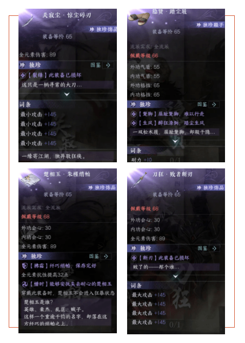 同时,这四位大师各自隐藏了大量的宝藏!除了掉落金色内功,紫色装备,首席绝技,限量出场等好物,还有高手隐藏的个人宝藏【绝世装备】,绝对是最好的装束!