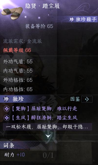 还有贤贤& ldquo沟通& rdquo完成后,或将掉落督阵装备【Yinxian & middot【踩尘】,每5秒移除所有定速减速效果。当然,因为这种鞋穿起来确实不舒服,所以移动速度会降低10%。