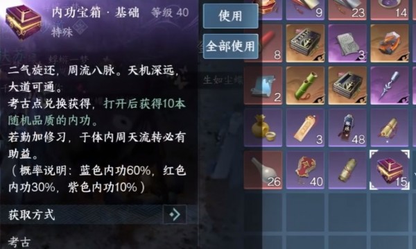 可以直接换十个宝箱,打开宝箱直接生成十个随机内功。