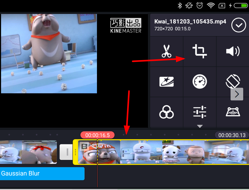 2、另外,当您在编辑视频时,还可以通过右侧的菜单列表找到“裁剪”功能(如下图),通过裁剪来修改屏幕的比例。到