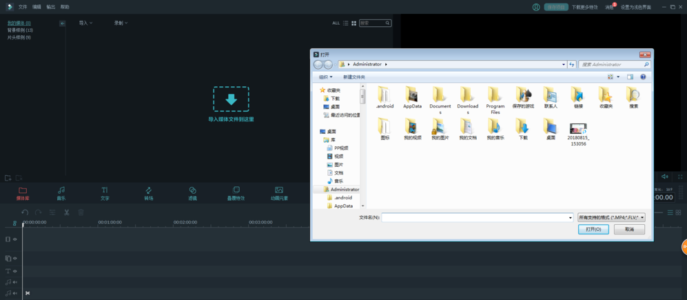 打开万兴盛手,登录账号,进入界面,点击“在此导入媒体文件”,
