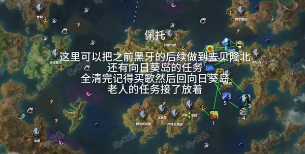 在这里可以跟进之前黑牙去贝龙北,以及向日葵的任务。记得买了歌再去葵花岛,老人的任务就有人接手了。