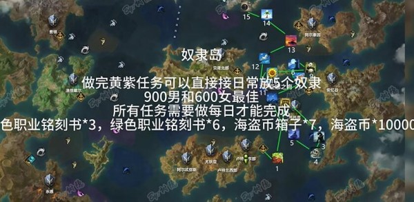 在黄紫完成任务后,每天可以直接释放5个奴隶,900男600女最好,蓝色职业铭文书,绿色职业铭文书,海盗币箱,海盗币。