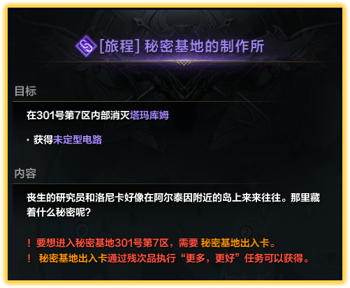 前面的任务都是跑腿的,直到4-6任务线“秘密基地的生产”