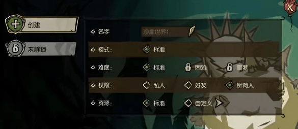 首先是名字,你可以自己创造一个唯一的名字,然后建立一个模型,也就是沙盒生存模型。还有一个就是设置权限,因为默认是对所有人开放的,所以可以选择是私密还是对好友开放。再一个是资源,包括很多东西,比如刷新规则资源,世界规则。当玩家的水平逐渐提高时,这些偏好也可以相应改变。