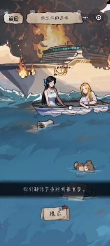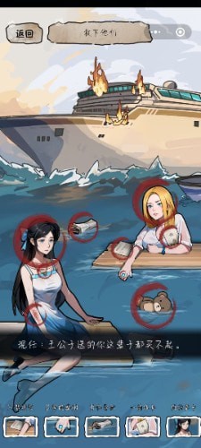 3.找到我们需要的东西后,会弹出一个选择框。(提示:无论我们在这里选择谁,都会显示任务失败。)这时候我们需要把右上角的船向左滑动,把前妻和现工作放进去通关。
