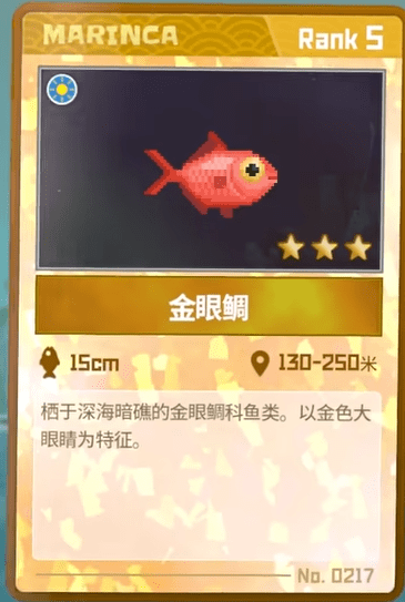 捕捉方法:金眼鲷鱼通常栖息在深海礁石中,需要解开头灯才能捕捉到。解锁后,可以用网枪或者静音镖捕获。