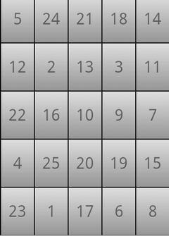 1、首先我们需要先了解舒尔特表,他可以帮助我们增强注意力。这张表有25个方格,每个方格里都有一个数字。你要做的就是从1 开始查找25 阶