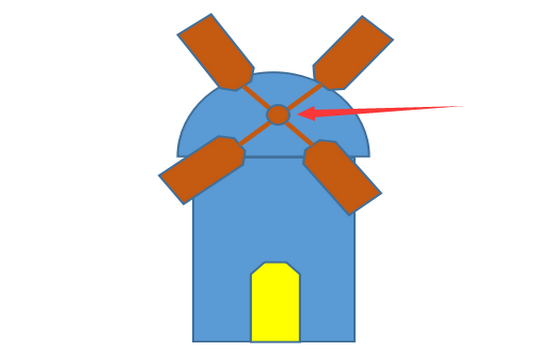 4、然后用【剪掉同侧角的矩形】在磨坊的屋顶上画出如下图所示的四个形状,并如下图排列,作为磨坊风车的风翼。并将填充颜色设置为[巧克力黄]。如下所示。到