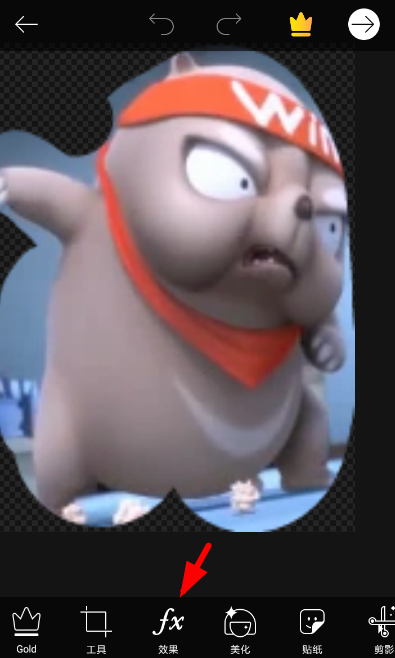 2、打开编辑界面,选择底部的“效果”功能,这样就可以调出特效列表,在“颜色”类别列表下找到“替换颜色”功能。到