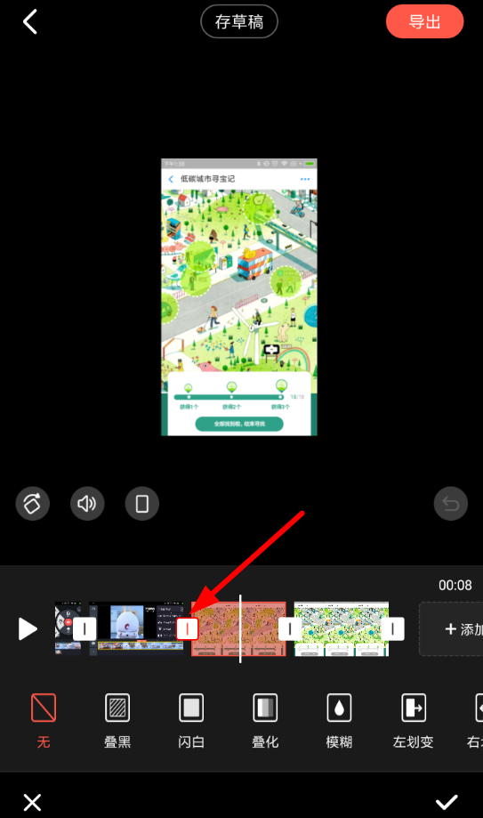 2、系统自动合成照片和视频后,我们还可以通过图片连接处的按钮设置转场效果(如下图)。到