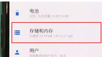 第二步:在设置选择中,选择【存储和内存】选项,点击打开