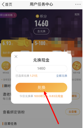 2. 兑换积分总量至少为1000积分,每日兑换率不固定。您可以在列表底部查看它。