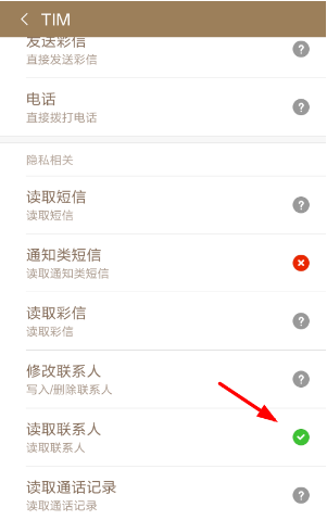3、如果好友遇到无法匹配的情况,那么需要到手机的设置页面找到“权限管理”功能,给腾讯TIM添加读取联系人的权限。
