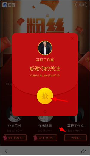 百度粉丝福利季领取红包步骤: