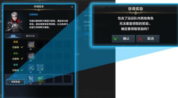 2.另外,因为亲善等级是探险队共享的,如果你已经获得了特定的亲善奖励,其他角色就不能再领取了。