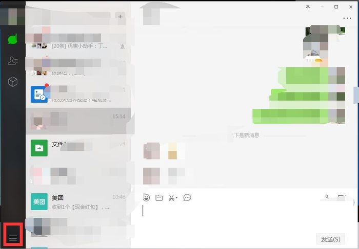 第六步:然后在电脑上打开微信,点击右下角的三个横排图标。