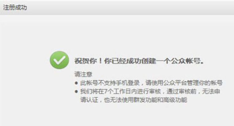 6、所有信息填写完毕后,公众号就创建完成了。