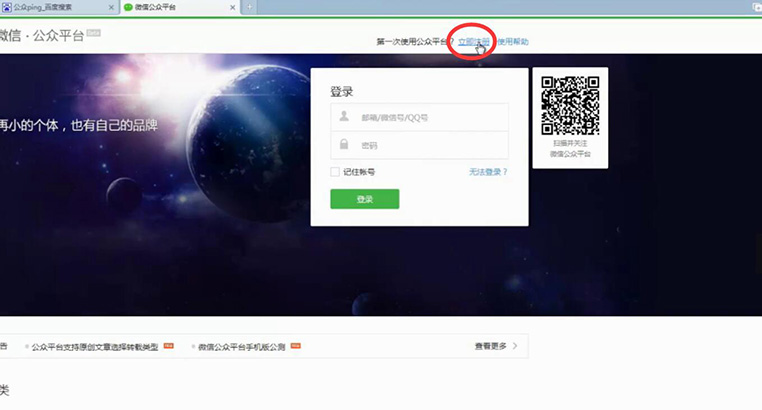 1.搜索微信公众平台,找到微信公众号官方网站并打开。