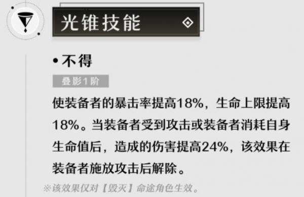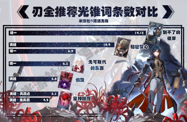由于刀锋独特的伤害构成,导致攻击加成的光锥与之契合度较低。
