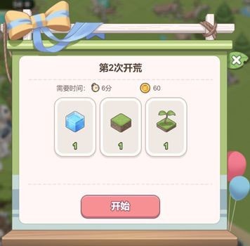 当等级树达到3级时,开荒功能解锁。开荒需要出动一只动物,消耗一定量的水、土、木头和金币,但有些荒地只需要金币。每次开垦只能选择与解锁土地相连的荒地。不同的荒地需要不同的材料。随着复垦次数的增加,后期对材料的需求会更大。如果材料不足,也可以用钻石购买。