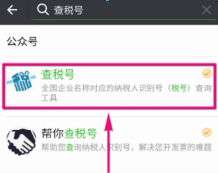 在此页面输入“税检号”,点击【搜索】,点击公众号如图。