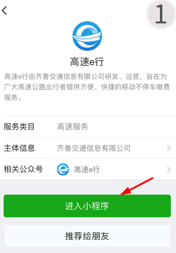 2.然后点击“进入小程序”选项,启用高速e专线服务功能。