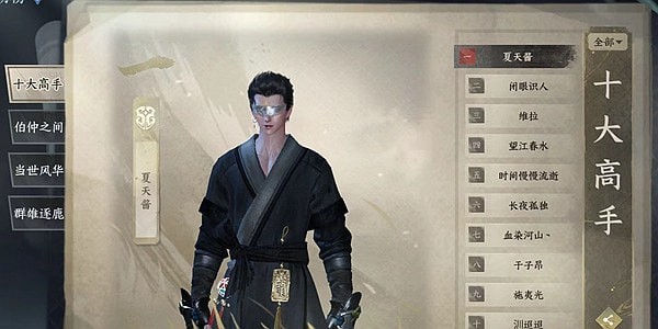 十大高手:当前战力排名前十的绝世高手,也可以通过筛选流派来展示。