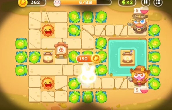清除障碍后放置瓶炮,在兔子没来的时候攻击障碍。