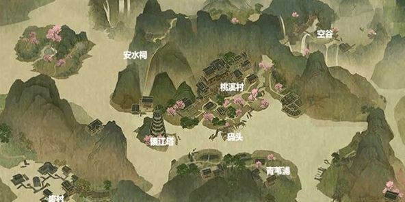 1.首先,我们瞬移到上面的桃溪村后,需要飞到西边去看一个房子,到达房子的小面就可以触发探索任务【安水明铃】;