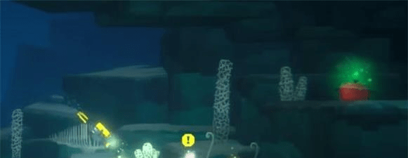 5.穿过洞穴,游到右下角找到有羽毛的珊瑚。