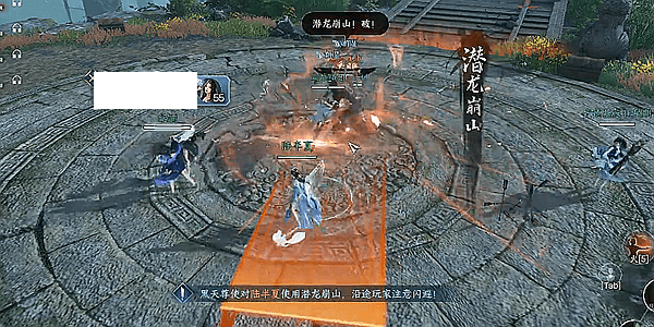 【潜龙崩山】会有发布方向提示。及时避开就好。可以在侧面或者侧面输出,避免受伤。